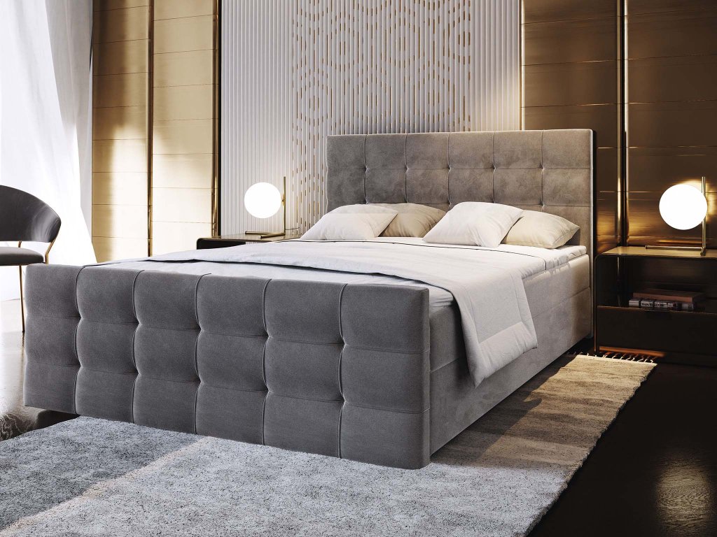VAMON kárpitozott boxspring franciaágy 160x200 – szürke