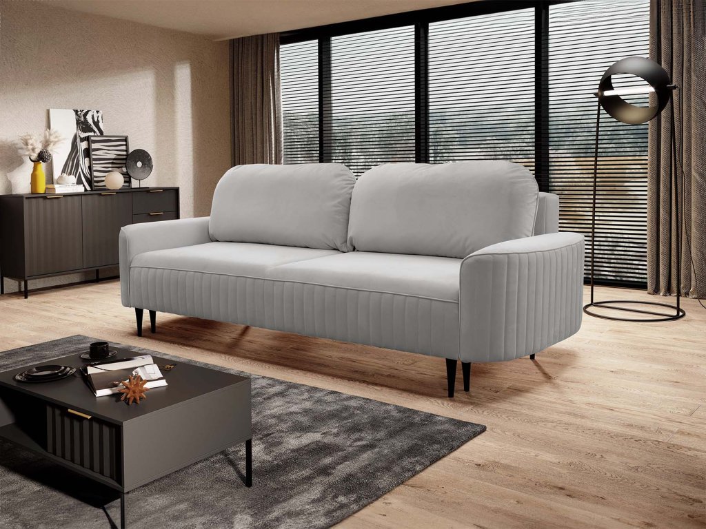 Szürke szövettel kárpitozott elegáns és nem mindennapi kinézettel rendelkező VENA kanapéágy, amely remek választás minden nappaliba. Ez az elegáns bútordarab nem csak a színével, de a maximális kényelmességével is hódít. A minőségi anyagok biztosítják a stabilitását és strapabírását. A kihúzható kanapé Velutto szövettel kárpitozott, amely egy igazán kellemes tapintású, bársonyos szövet. Az ülőfelület gyártásához felhasznált PUR hab és hullámrugók garantálják az optimális kényelmet és az igazi luxust. A szétnyitható funkciójának hála a kanapé egy kényelmes vendégágyként is szolgálhat. A kanapé kihúzása után egy 140 x 200 cm fekhelyet kap majd. Ehhez még vásárolhat egy minőségi fedőmatracot és vendégei haza sem akarnak majd menni. A fekete színű fa lábak biztosítják a stabilitását és növelik az eleganciáját. Tökéletes a mindennapi pihenéshez, relaxációhoz, tévénézéshez. Az ágyneműtartó pedig egy további praktikus funkció, ami miatt beleszerethet ebbe a gyönyörű kialakítású kanapéba.
