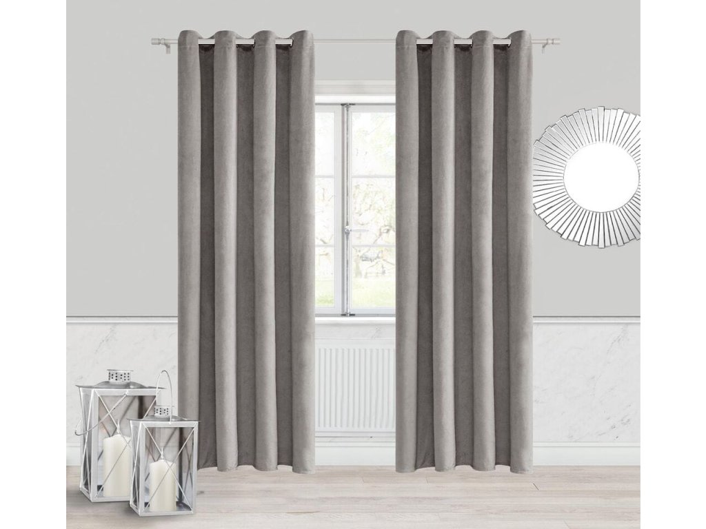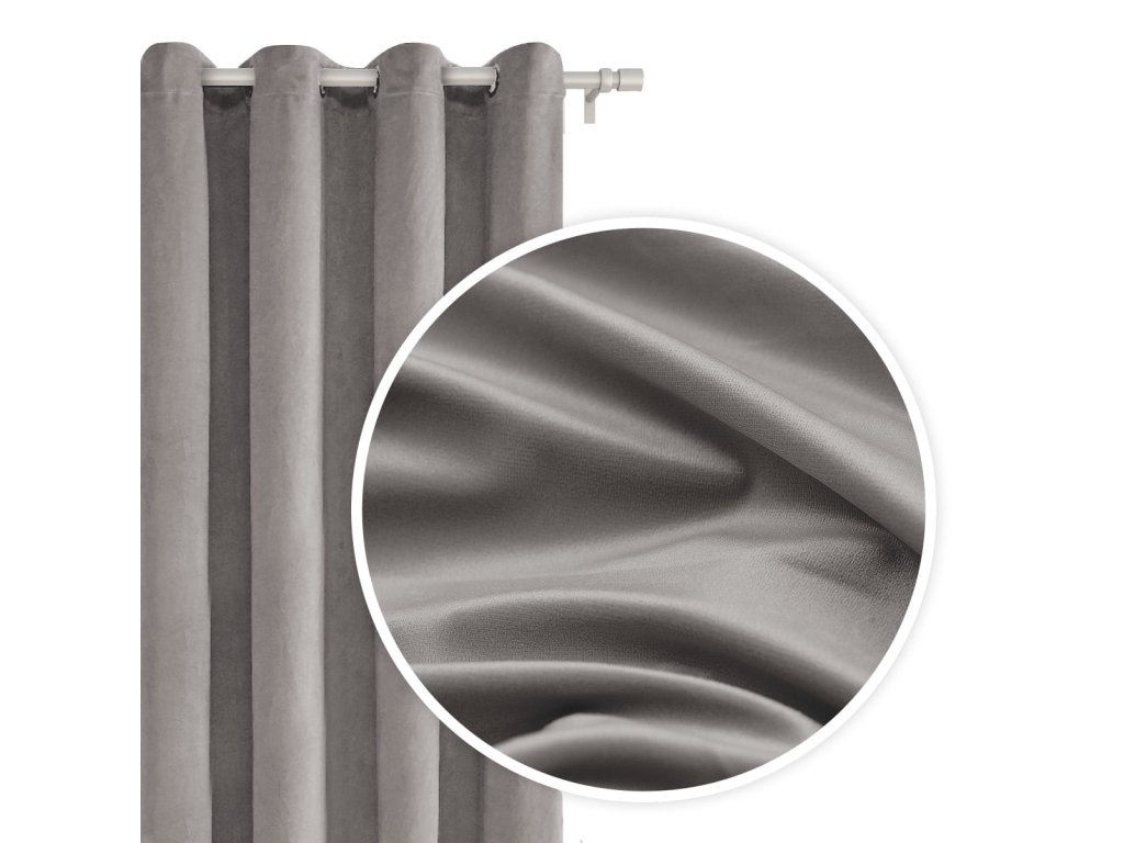 Elegáns VERA sötétítő függöny szürke színben univerzális 250 cm magasságra és 140 cm szélességre, melynek köszönhetően a helységek többségébe megfelelő. Nagyon elegáns hatást kelt. A nappaliját a nyugalom és a pihenés szigetévé varázsolja. Velúr szövetből készült, amely nem engedi át a napsugarakat. Remek választás a nappaliba vagy a hálószobába.
