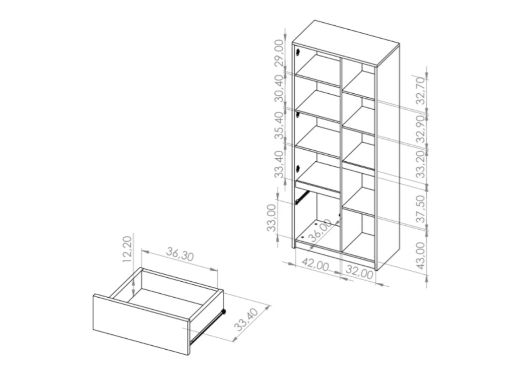 A VERDE polcos szekrény olyan bútor, amelyben könyveket, dekorációs tárgyakat vagy kedvenc fényképeit tárolhatja. Fel van szerelve nyitott és zárt tágas polcokkal és egy fiókkal.