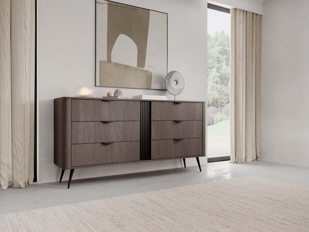 A hat tágas fiók bőséges tárolóhelyet kínál a ruhák, kiegészítők vagy egyéb tárgyak számára, így könnyedén rendet tarthat az előszobában, a nappaliban, a hálószobában vagy akár a dolgozószobában is. A visszafogott, mégis karakteres részletek kifinomult összhatást teremtenek, miközben a komód nemcsak esztétikus, de praktikus darabja lesz az otthonának.
