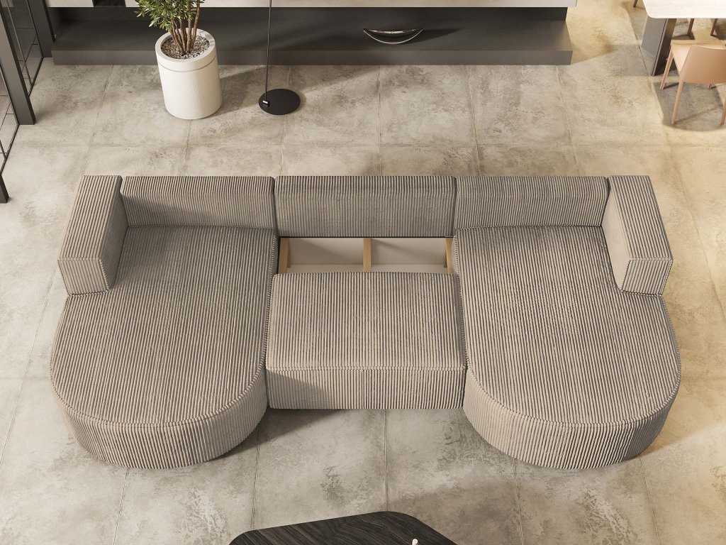 Mivel az U alakú ülőgarnitúra teljes egészében kárpitozott, így akár a szoba közepére is elhelyezhető, nem szükséges a fal mellé tennie.