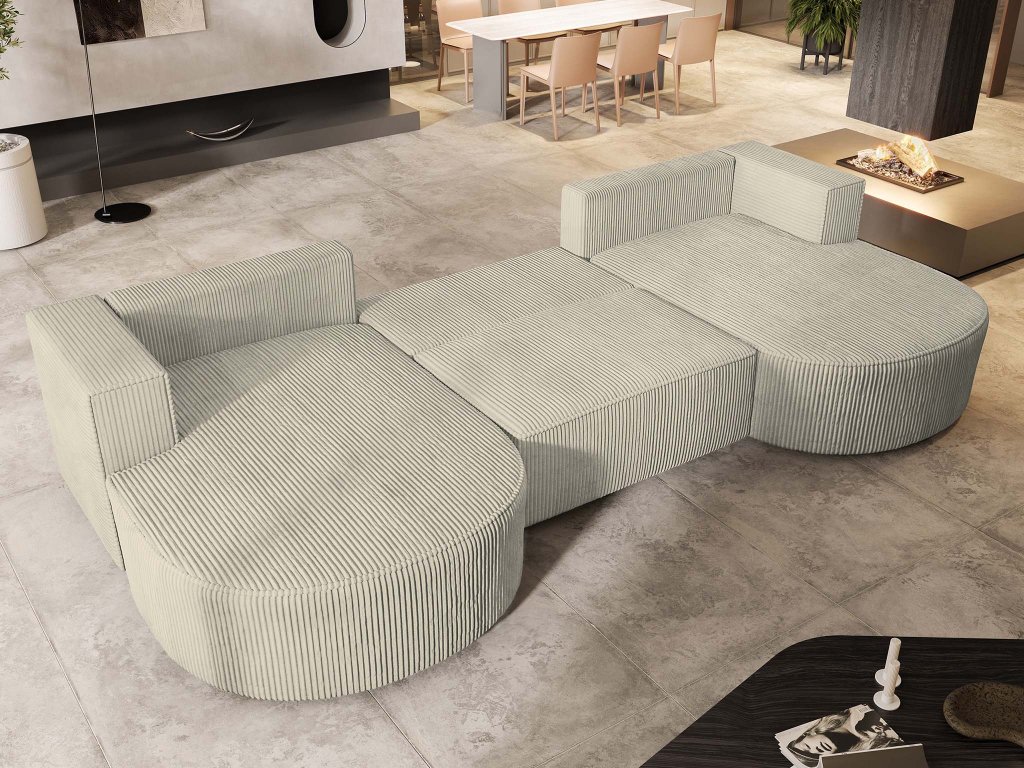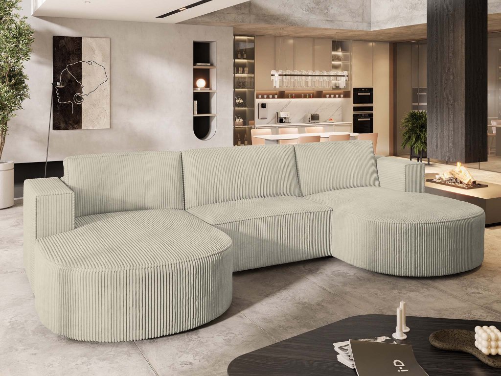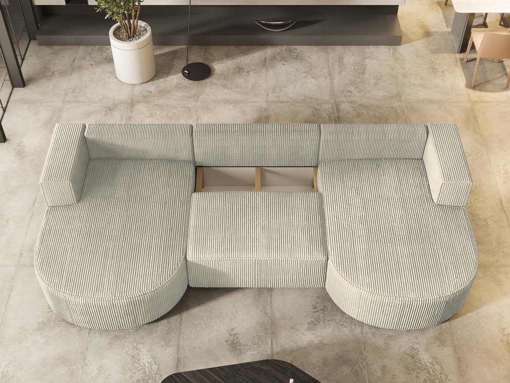 Vezzo P – egy ikonikus bútordarab, amely az egyszerű nappalit is élettel telivé és modernná varázsol. Ez az elegáns krémszínű kordbársony kárpitozással rendelkező VEZZO P kihúzható U alakú ülőgarnitúra nem marad figyelmen kívül egyetlen otthonban sem. Az ülőfelület alatt praktikus ágyneműtartó rejtőzik. Amikor pedig eljön a pihenés ideje, az ágyazható ülőgarnitúra egy egyszerű mozdulattal egy kényelmes fekhellyé alakítható.