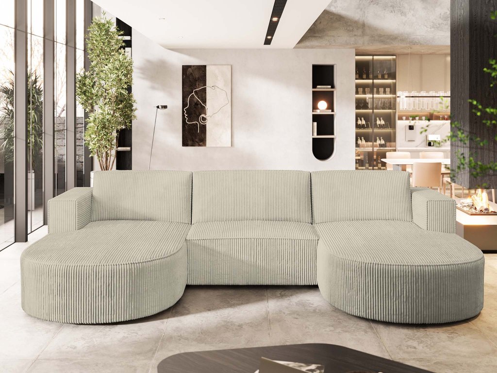 VEZZO P kihúzható U alakú ülőgarnitúra - krémszín