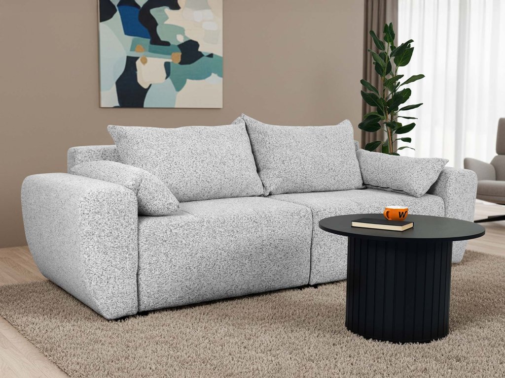 A praktikum, a stílus és modern kialakítás tökéletes kombinációját nyújtja a VIENTE ágyneműtartós kanapéágy. Ez az ágyazható kanapé jó választás bármely nappaliba vagy dolgozószobába. A praktikumot, a kényelmet és a stílust ötvözi egyetlen bútordarabban. A kihúzható funkciónak köszönhetően pillanatok alatt egy kényelmes fekhellyé alakítható, amely tökéletes a vendégek számára. A tágas ágyneműtartó pedig helyet biztosít a plédeknek, párnáknak vagy akár a szezonális ruháknak is. A szürke szövet modern, letisztult hatást kelt, így könnyedén kombinálható más bútorokkal vagy kiegészítőkkel – egy szép dohányzóasztallal vagy egy nappali szekrénysorral, így igazán gyönyörű nappalit hozhat létre.