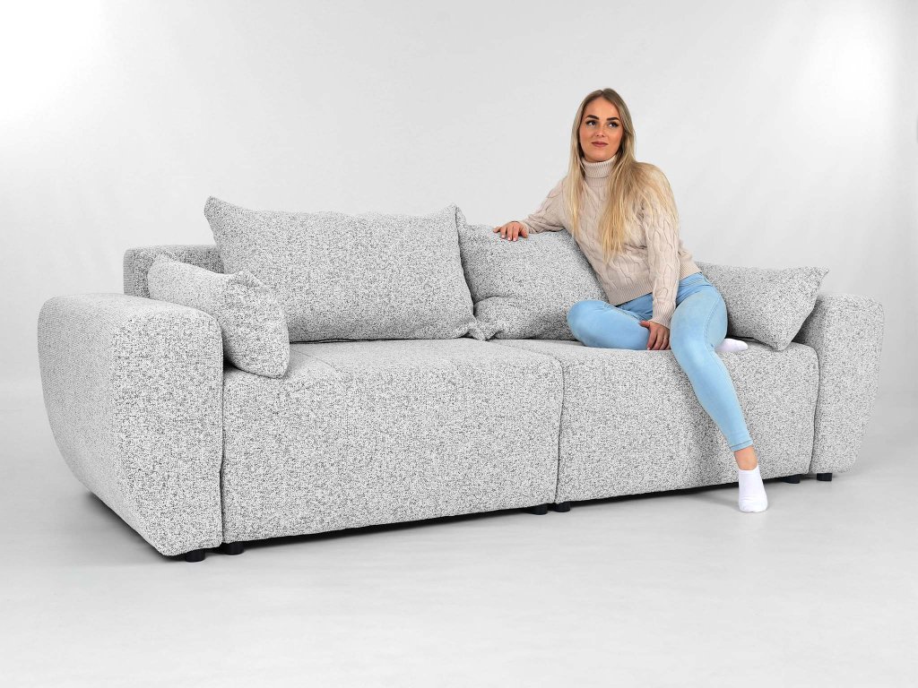 Az ágyneműtartóst kanapét úgy tervezték, hogy maximális kényelmet és hosszú élettartamot biztosítson. A Puente szövet rendkívül kellemes tapintású, puha és elegáns, finoman texturált felülete természetes, otthonos hatást kelt. A váza tömör fa és bútorlap kombinációjából készült, ami stabilitást és hosszú élettartamot garantál. A Bonell rugók és a T30-as hab (keménységi fok: 4/6) gondoskodnak a kényelmes, de megfelelő alátámasztásról. Szép kidolgozottsággal rendelkeznek a háttámlák és a kartámlák is, melyek a hab töltetnek köszönhetően hosszabb ülés során is komfortosak maradnak. A 3,5 cm magas, erős műanyag lábak stabilitást biztosítanak a kanapénak, és megkönnyítik a padló tisztán tartását is.