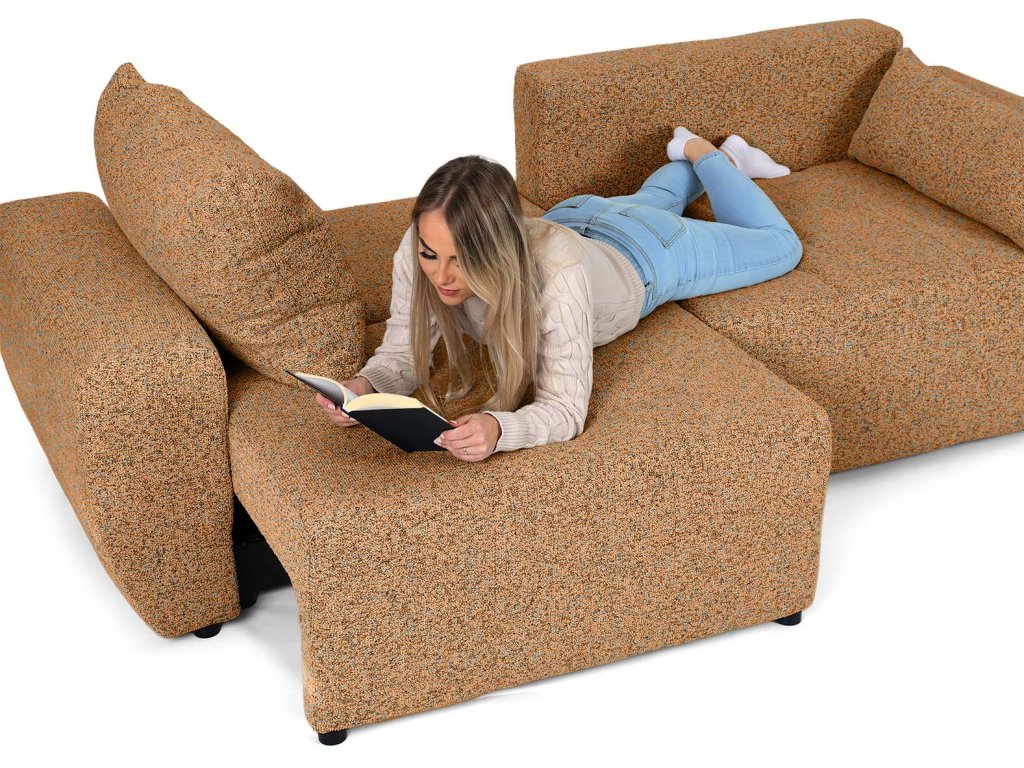 Az ágyneműtartóst kanapét úgy tervezték, hogy maximális kényelmet és hosszú élettartamot biztosítson. A Puente szövet rendkívül kellemes tapintású, puha és elegáns, finoman texturált felülete természetes, otthonos hatást kelt. A váza tömör fa és bútorlap kombinációjából készült, ami stabilitást és hosszú élettartamot garantál. A Bonell rugók és a T30-as hab (keménységi fok: 4/6) gondoskodnak a kényelmes, de megfelelő alátámasztásról. Szép kidolgozottsággal rendelkeznek a háttámlák és a kartámlák is, melyek a hab töltetnek köszönhetően hosszabb ülés során is komfortosak maradnak. A 3,5 cm magas, erős műanyag lábak stabilitást biztosítanak a kanapénak, és megkönnyítik a padló tisztán tartását is.