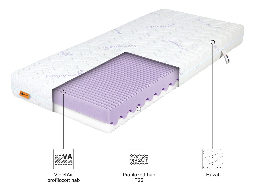 Anyagösszetétel: Profilozott T25 poliuretán hab, Lavender huzat