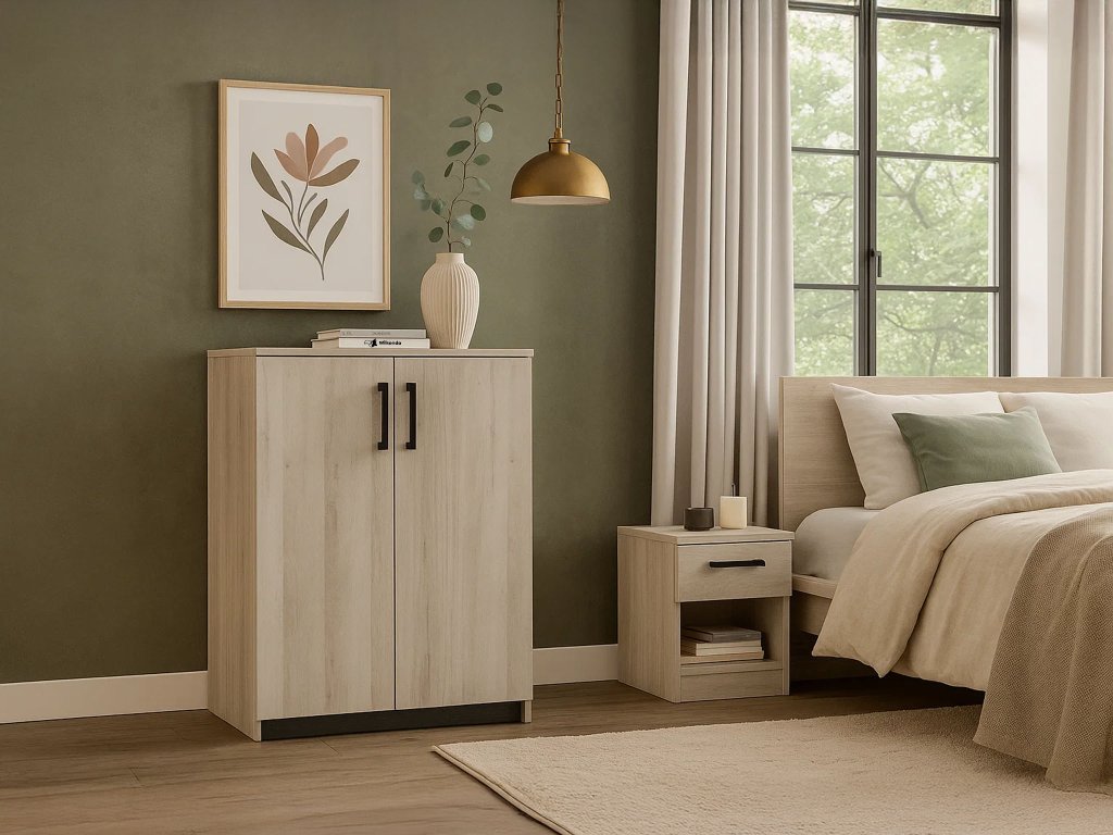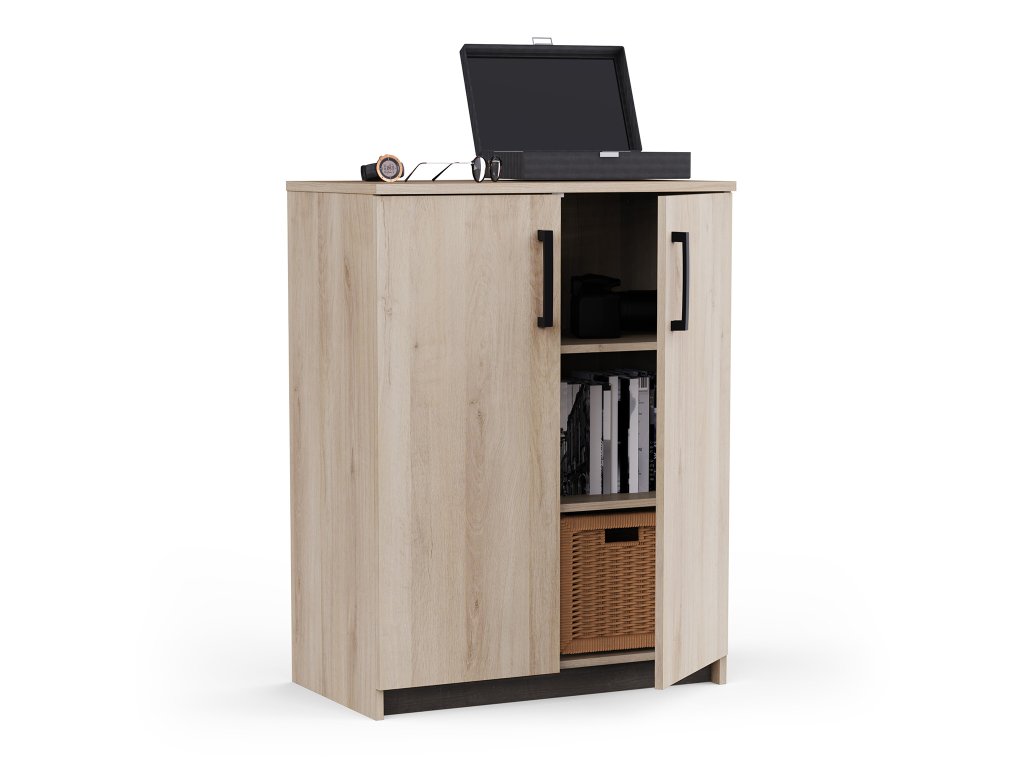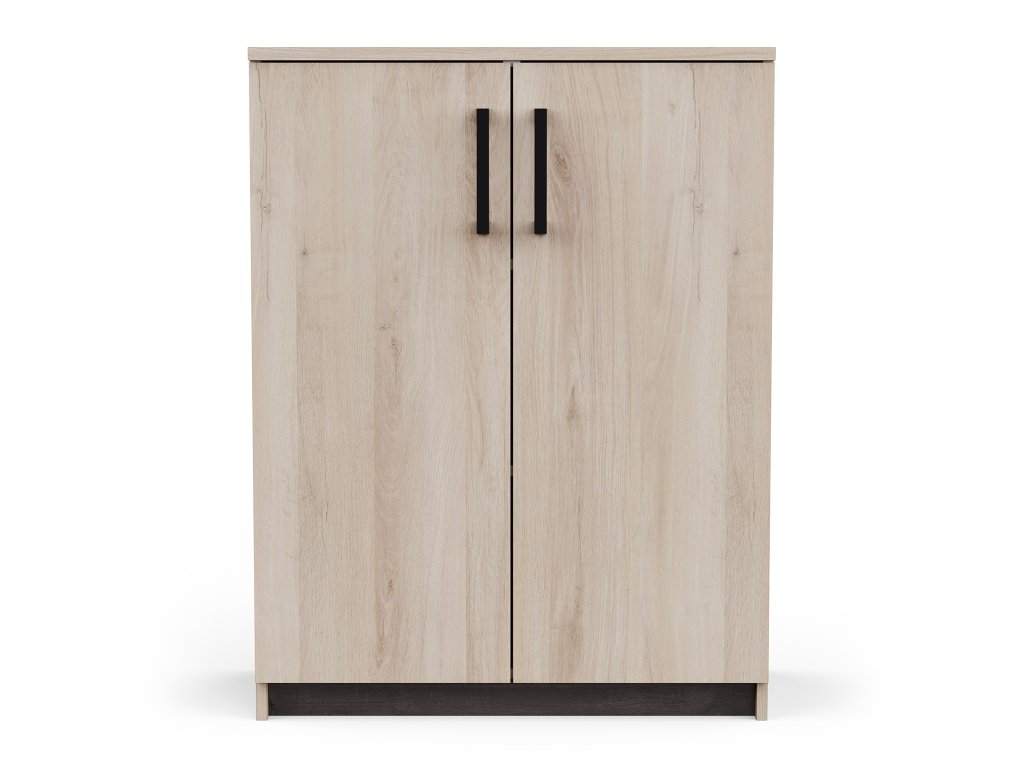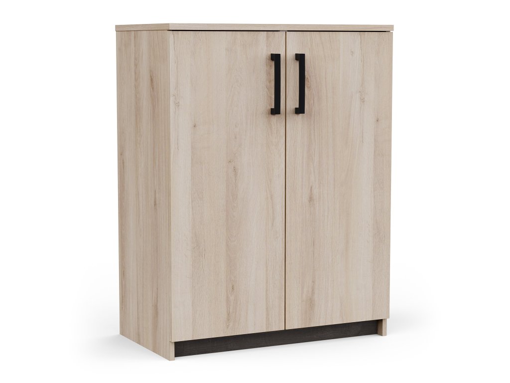 Ez a kétajtós komód két tágas polcot rejt, amelyek praktikus megoldást nyújtanak ruhák, dokumentumok vagy mindennapi használati tárgyak tárolására. Ideális választás nappaliba, hálószobába vagy dolgozószobába, ahol egyszerű tisztán tarthatóságát és letisztult, sallangoktól mentes megjelenését fogja értékelni.