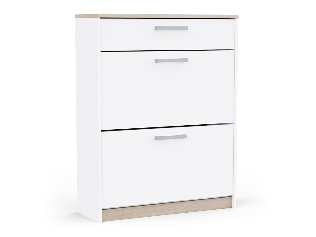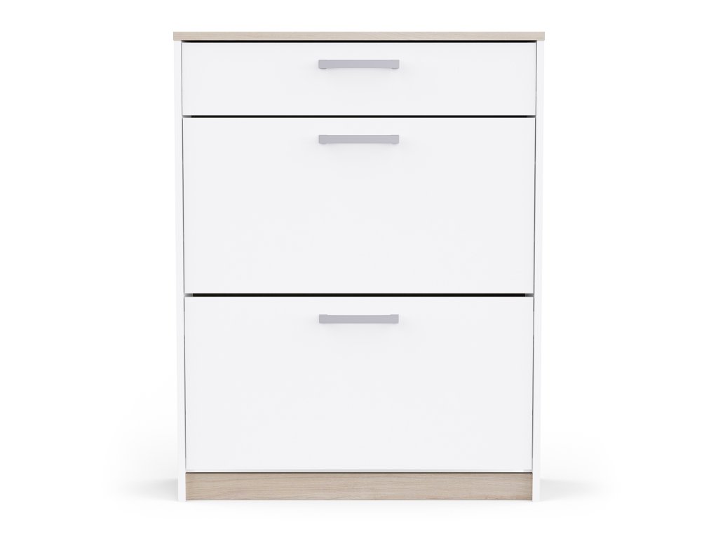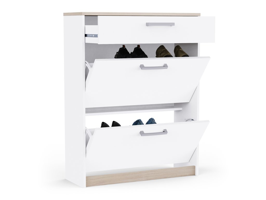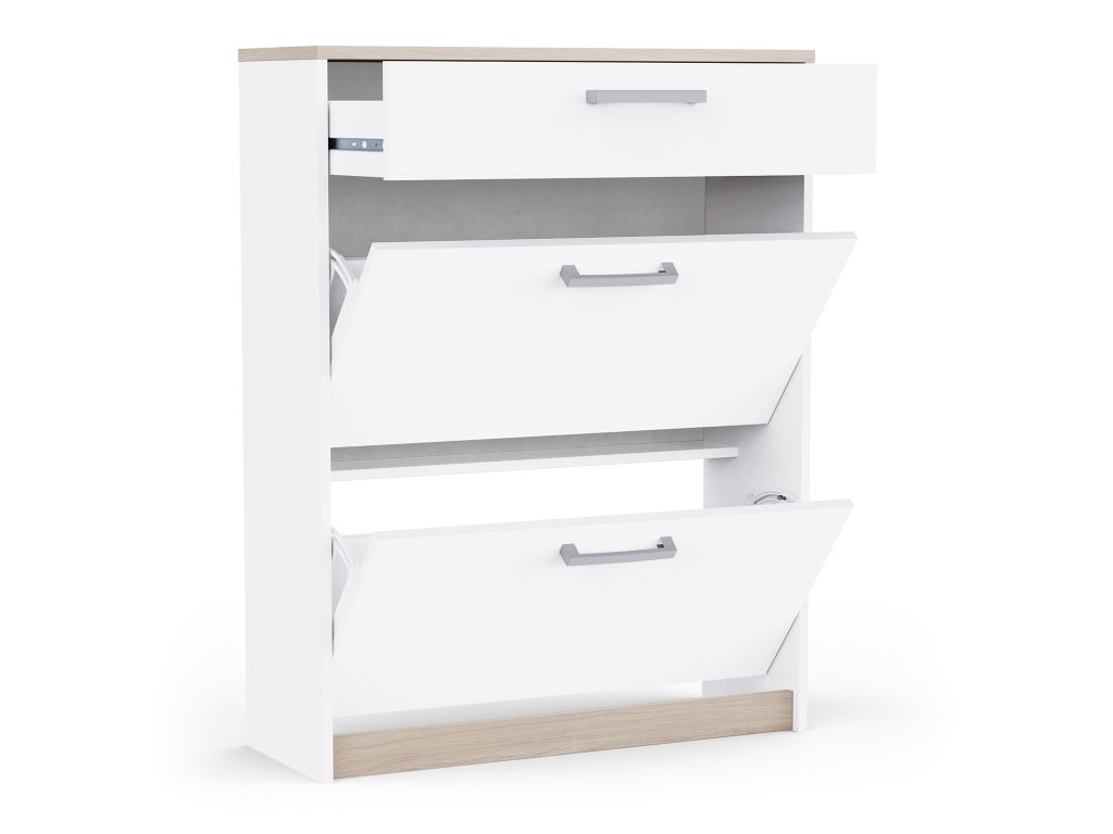 Belül két lenyitható cipőtartó rekesz található, melyek lehetővé teszik a cipők átlátható és higiénikus tárolását. A praktikusságot egy fiók egészíti ki, amely tökéletes kulcsok, krémek, cipőfűzők vagy más, kéznél tartani kívánt apróságok számára.