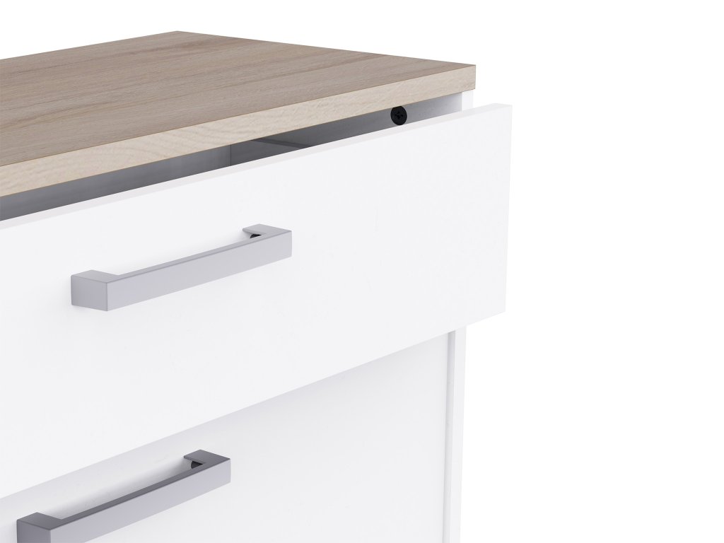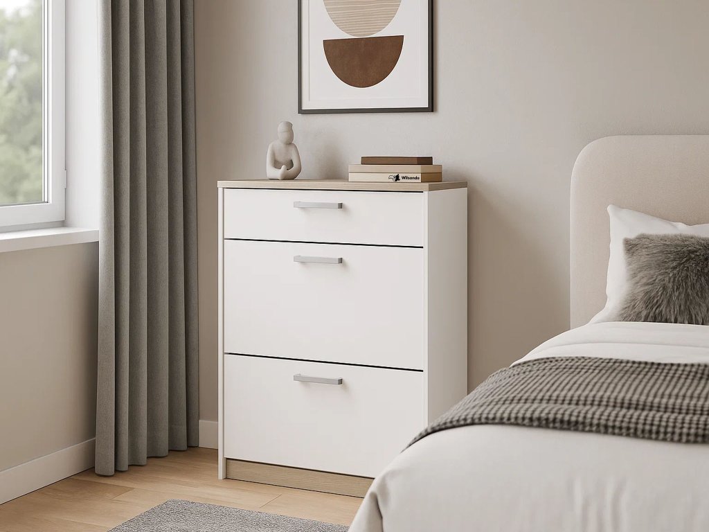 A Watson cipősszekrény fehér kivitelben modern megoldást kínál a rendezett előszobához. Letisztult vonalai, ezüst fogantyúi és sötét lábazata stílusos kontrasztot teremtenek. A praktikus, lenyitható cipőtartó rekeszek és az apróságok számára kialakított fiók rendet biztosítanak, anélkül hogy a designból engednének. Semleges színvilága miatt könnyedén kombinálható különböző enteriőr stílusokkal, így egyszerre hat frissnek és elegánsnak. Tartós felülete egyszerű tisztítást és hosszú élettartamot garantál.