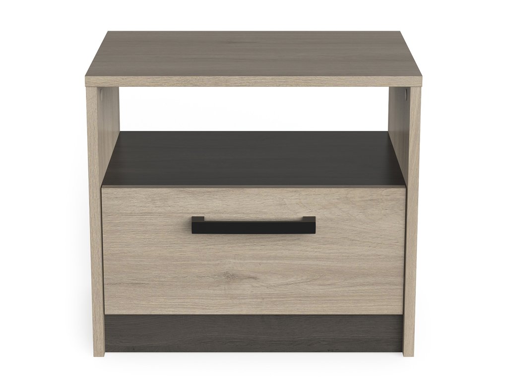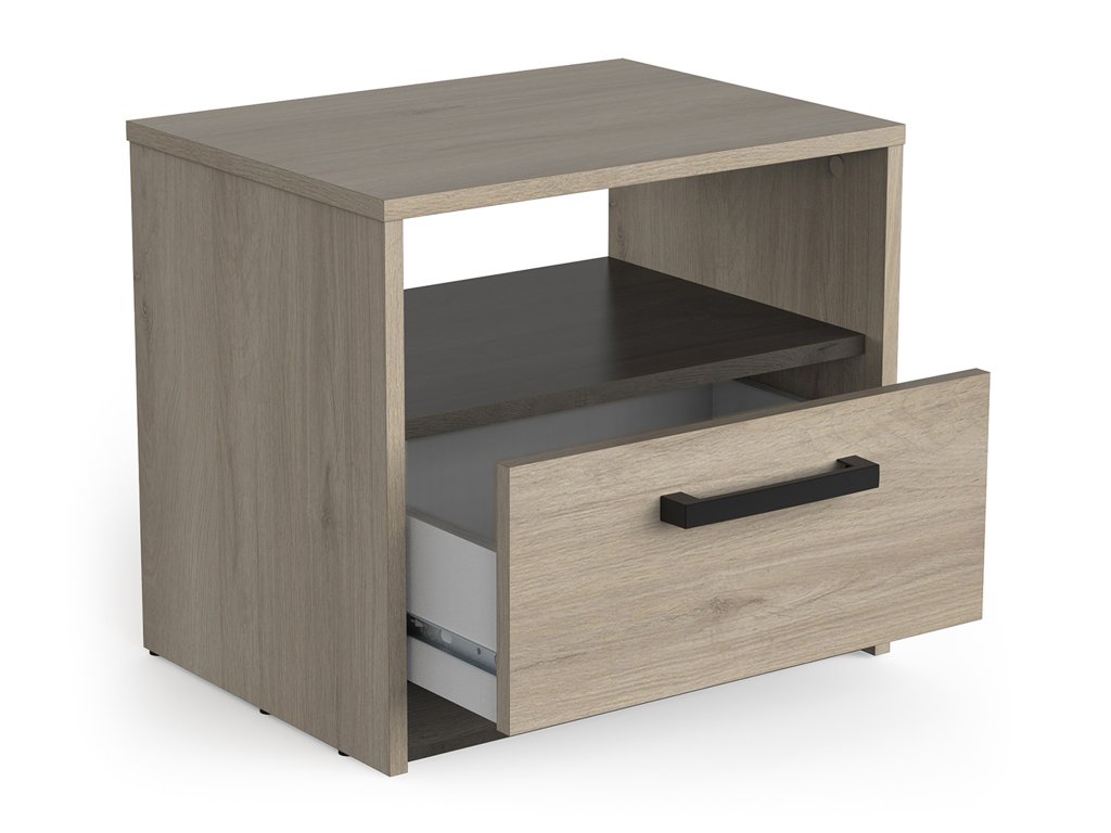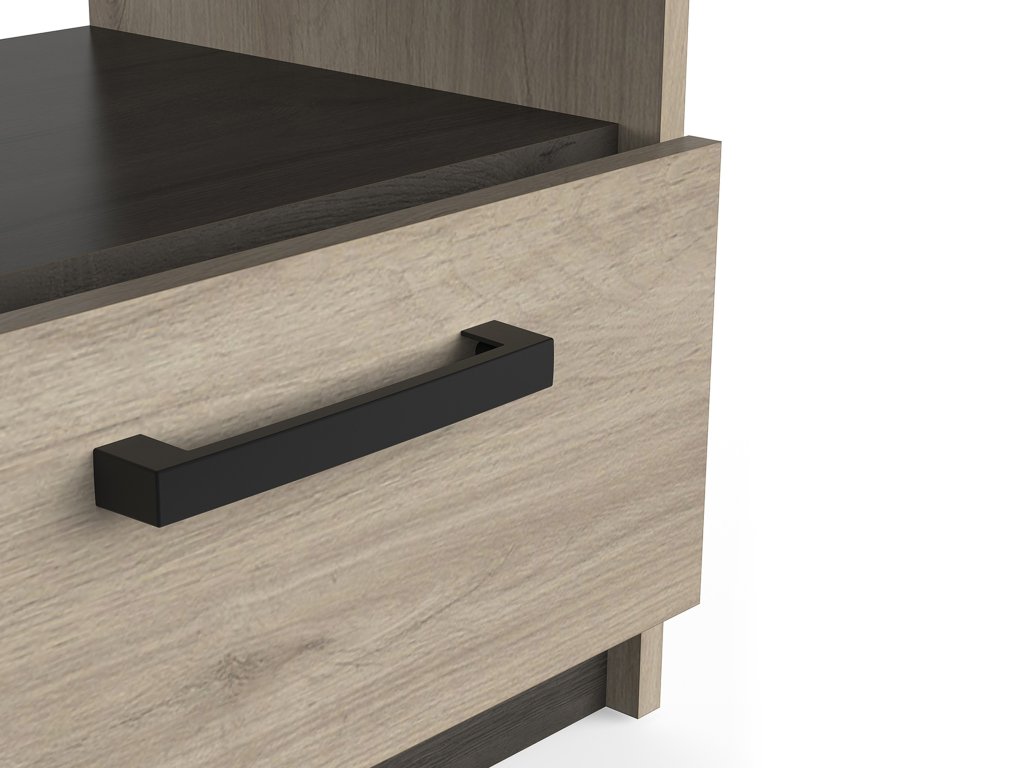 A praktikus tárolási megoldás nyitott polc és fiók kombinációját kínálja – a nyitott polc ideális könyv, magazin vagy telefon elhelyezésére, míg a fiók a személyes tárgyakat tartja távol a szem elől.
