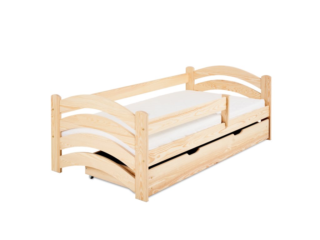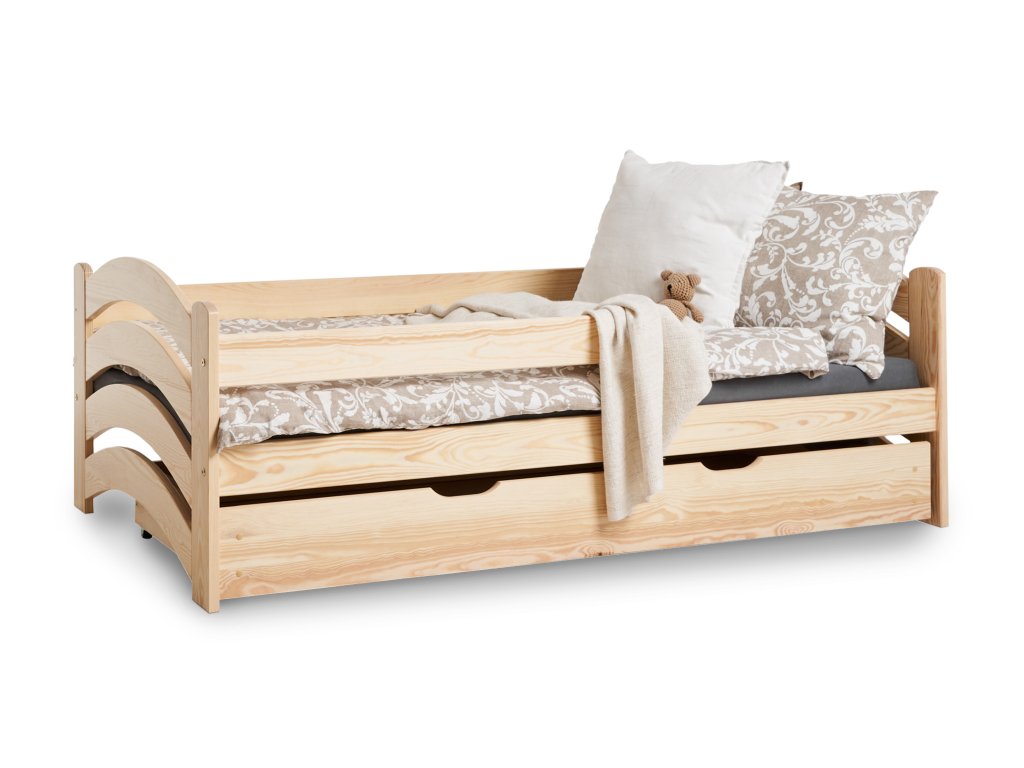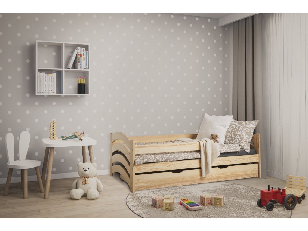 A tömör fából készült WIKI gyerekágy 80x140 cm még praktikus ágyneműtartó fiókkal is rendelkezik. Az ágy 20 mm vastag tömör borovi fenyőből készül, ami garantálja a stabilitását, a szilárdságát és a hosszú élettartamát. A lekerekített élek növelik a biztonságot és esztétikus megjelenést kölcsönöznek. Kompakt méretének köszönhetően kisebb gyerekszobákba is jól illik. Időtálló natúr fa színe és kialakítása könnyen kombinálható más bútorokkal. A leesésgátló pihentető és biztonságos alvást biztosít gyermekének. Az ágy tökéletes olyan gyerekeknek, akik már kinőtték a kiságyat, de még mindig kicsik egy nagyobb ágyhoz. Az ágy nagy előnye a kihúzható, négy keréken guruló ágyneműtartó tároló fiók, amely az ággyal azonos színű. Remekül használható az ágynemű, a játékok vagy a szezonális ruhák tárolására, így segít rendet tartani a szobában.