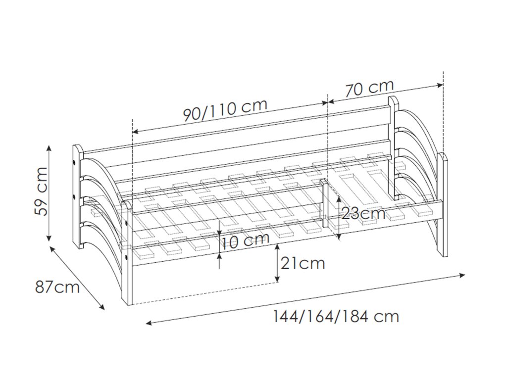 Az ágy nem tartalmaz matracot és ágyrácsot. Minimum 12 cm vastag matrac vásárlását javasoljuk. Tekintse meg matrac kínálatunkat: 80x140-es gyermekmatracok.