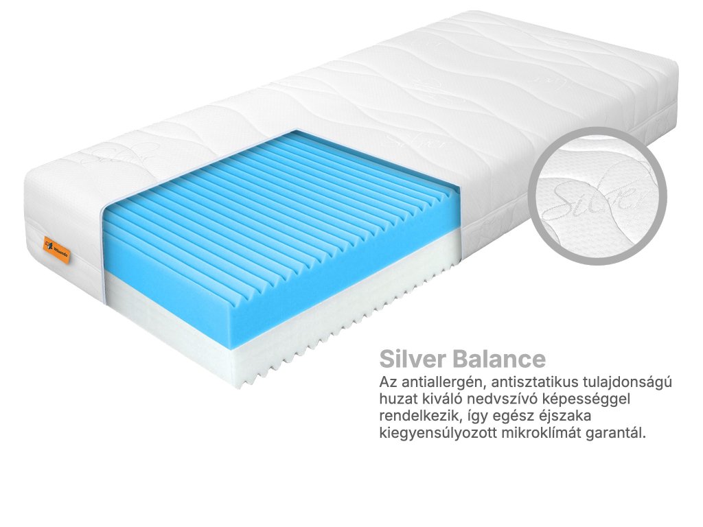 A matrac minőségi Silver huzattal rendelkezik, amely nemcsak esztétikus megjelenést biztosít, de segít a matrac frissességének megőrzésében és megvédi azt a szennyeződésektől is. A modern huzat nem csak elegáns külsőt kölcsönöz a matracnak, de antiallergén és antisztatikus tulajdonságainak köszönhetően hozzájárul az egészségesebb és kényelmesebb alváshoz is. A cipzáras huzat lehetővé teszi, hogy könnyedén tisztán tartsa. Mosógépben mosható 30°C-on. Egy jól megválasztott matracnak köszönhetően biztosítva lesz a pihenése, ráadásul minden reggel üdén és kipihenten ébred majd.