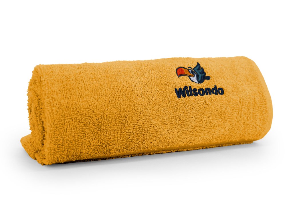 Dobja fel fürdőszobáját friss, narancssárga színnel! A Wilsondo törölköző 50×100 cm-es méretben, 100% frottír pamutból készült, amely híres puhaságáról és kiváló nedvszívó képességéről. A 400 g/m²-es anyagsűrűségnek és a megerősített dupla hurkolásnak köszönhetően a törölköző tartós, ugyanakkor könnyű és kényelmes a mindennapi használathoz. A minőségi kidolgozást precíz szegés és a visszafogott Wilsondo logó teszi teljessé, amely modern megjelenést kölcsönöz neki. A narancssárga törölköző ideális otthonra, utazáshoz, de szaunába vagy sporttáskába is tökéletes választás.