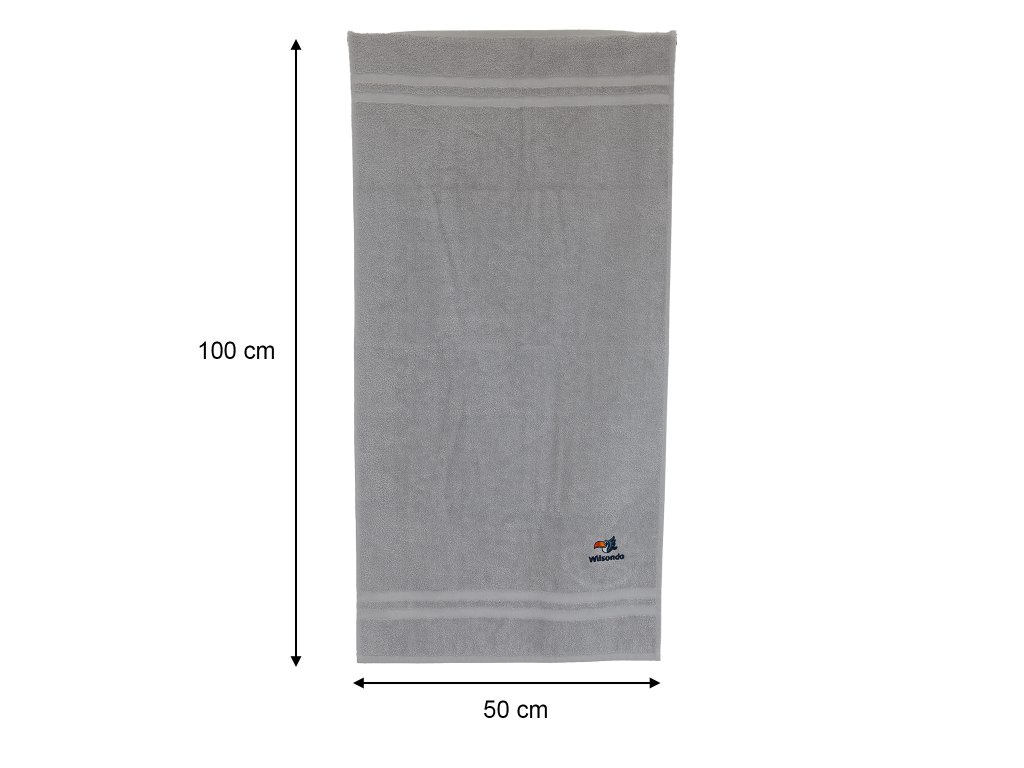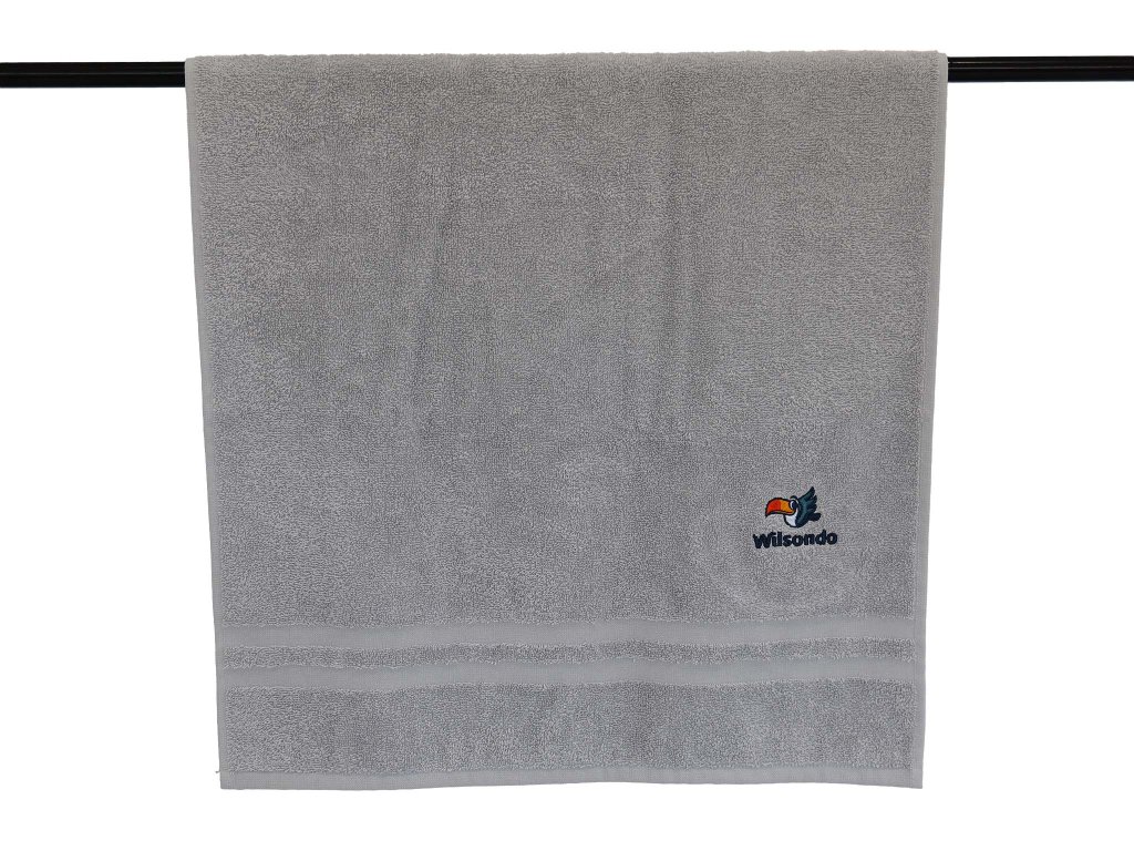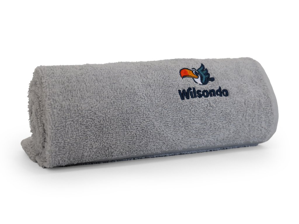 A Wilsondo frottír törölköző szürke kivitelben időtlen megjelenést és megbízható kényelmet kínál. 100% frottír pamutból készült, 400 g/m² anyagsűrűséggel, így kiválóan nedvszívó, puha és tartós. A megerősített dupla hurkolás meghosszabbítja az élettartamát még gyakori mosás esetén is. Az univerzális, 50×100 cm-es méret praktikus társsá teszi otthon, edzőteremben vagy utazáskor egyaránt. Az elegáns szegély és a hímzett Wilsondo logó egyszerű, mégis kidolgozott dizájnt kölcsönöz a törölközőnek, amely bármely fürdőszobába illik.