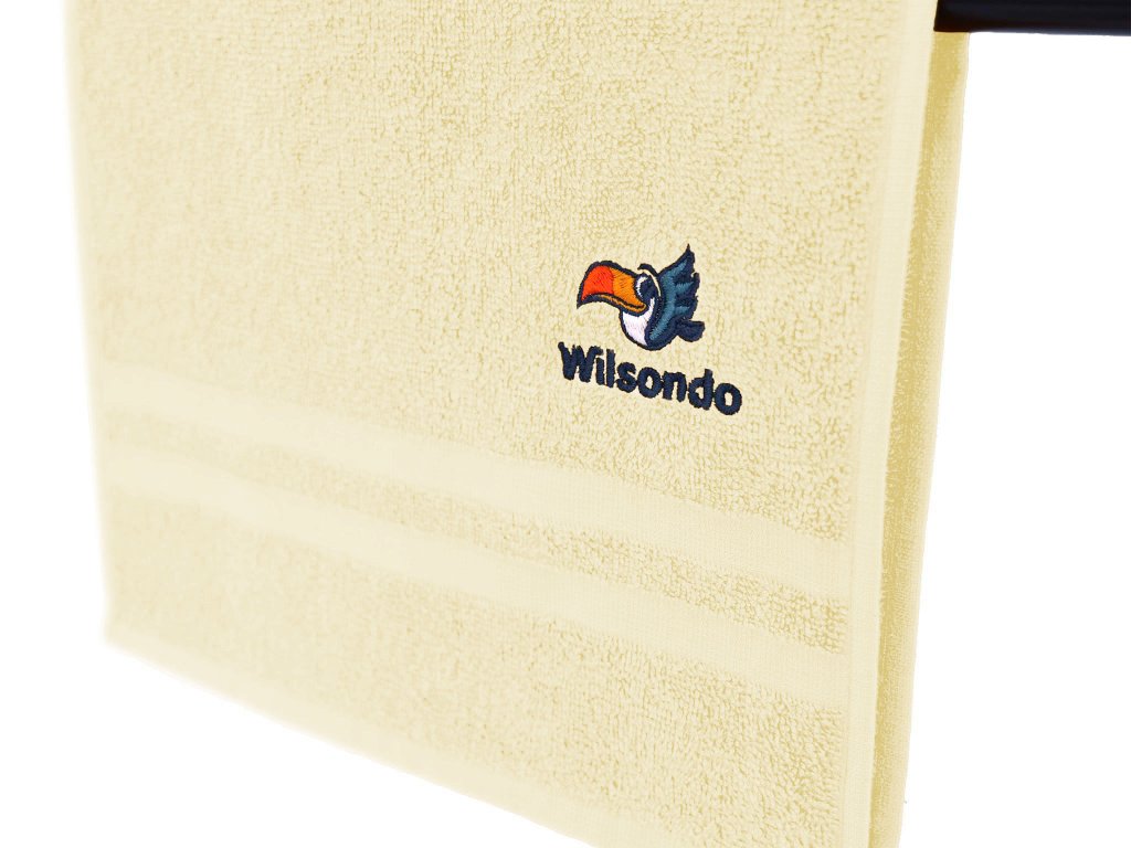 - Nakupujete iz Slovenije? Ta izdelek najdete tudi v naši slovenski spletni trgovini: Brisača z logotipom Wilsondo 50x30 - kremna ↗