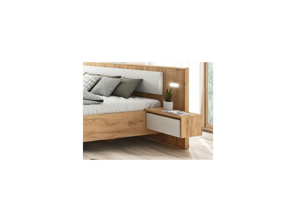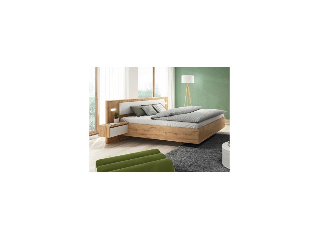 XELO franciaágy 160 x 200 cm ágyráccsal együtt kapható. Az ágy részét képezik az éjjeliszekrények és a LED világítás. Az ágytámlát egy öko bőrrel kárpitozott puha rész díszíti.