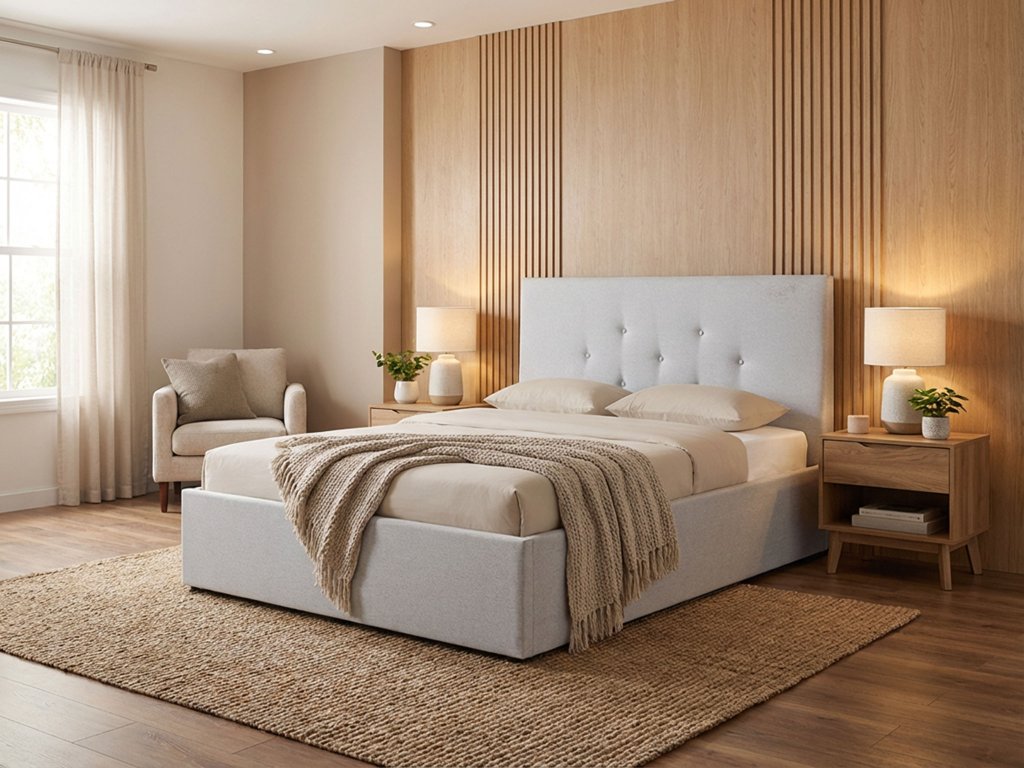 Elegáns szürke ágy a modern hálószobába