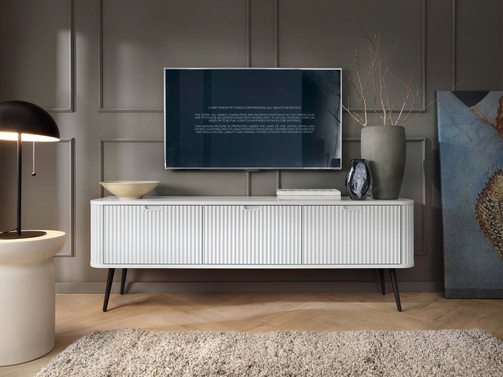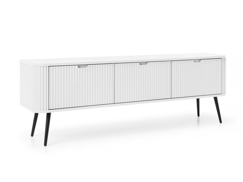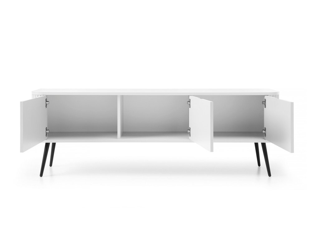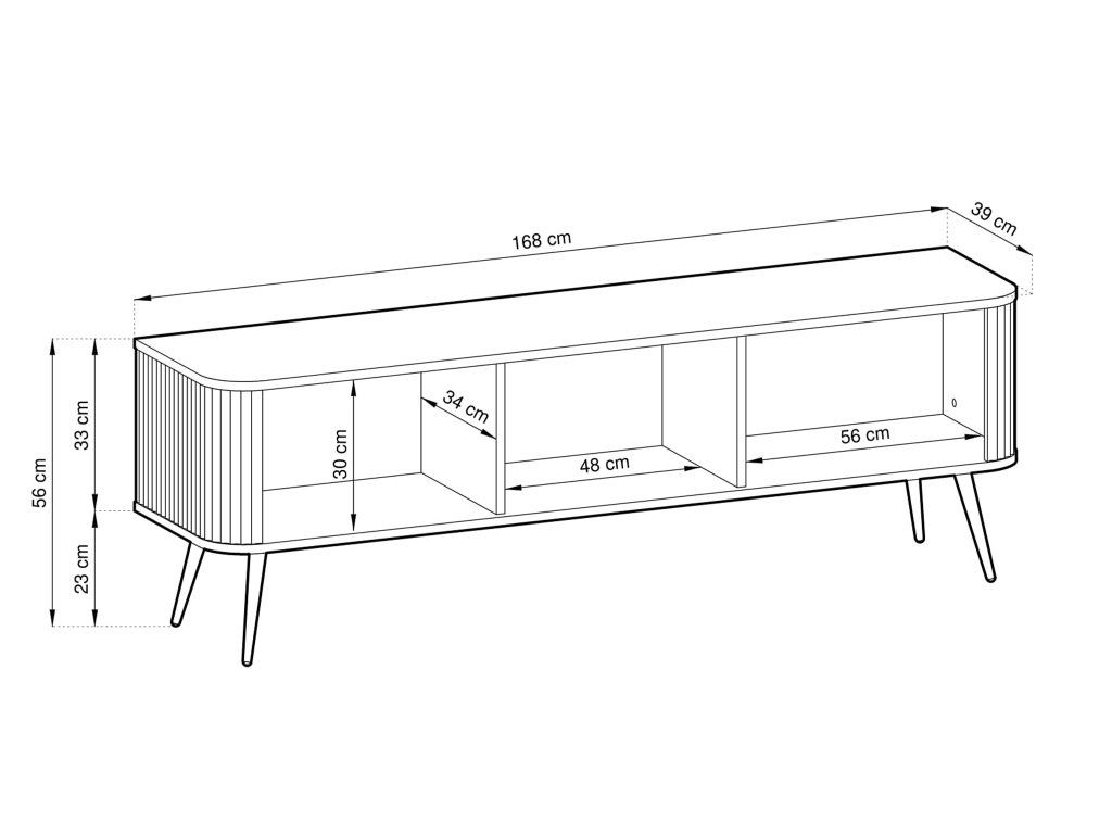 A ZOVA tévés szekrény a Zova bútorkollekció egyik gyönyörű és elegáns darabja. Nem csak elbűvölő kinézettel rendelkezik, de praktikus tároló hellyel is a három kis ajtós szekrénynek köszönhetően. A magas fekete lábai még inkább növelik az eleganciáját.