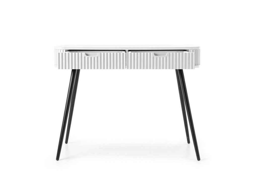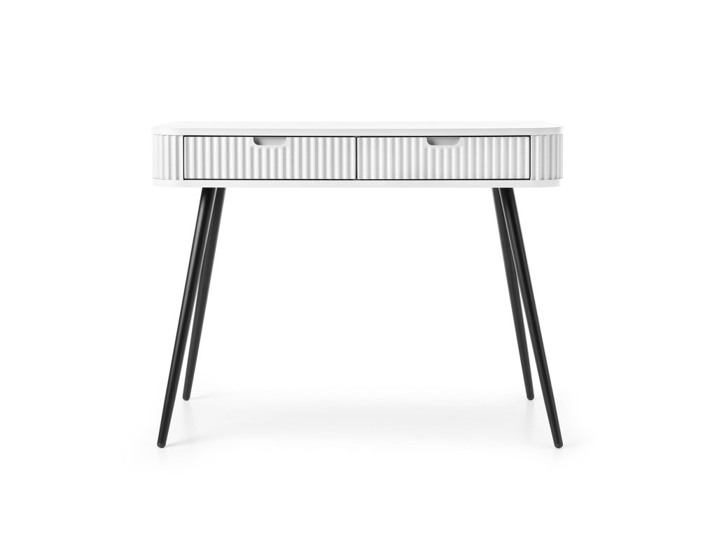A ZOVA fehér fésülködő asztal elegáns fehér színben készül, amelynek köszönhetően könnyen beillik majd bárhová. Két praktikus fiókkal rendelkezik, amelyekbe elhelyezheti a krémeket, sminkeket vagy egyéb szükséges dolgokat. A tetején pedig jól mutatnak majd a parfümök. Az asztal tökéletes íróasztalként vagy sminkasztalként is szolgálhat. Az pipere asztal 65 cm magas fekete fém lábakkal rendelkezik.